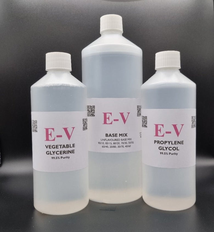 Quality EP Grade Vegetable Glycerine and USP Grade Propylene Glycol. You can mix your preferred VG/PG ratio to create your DIY e-liquid base. If you prefer ready mixed PG/VG ratio then our pre-mixed Base Mix for your perfect VG/PG ratio 50vg/50pg, 70vg/30pg, 80vg/20pg etc.